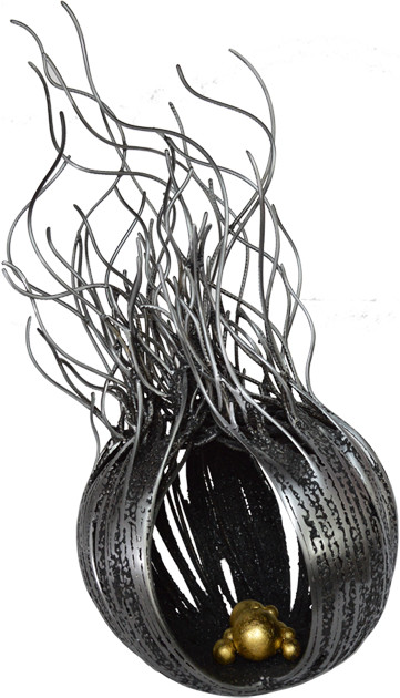 Au printemps 2018, au Salon des Artistes Parisiens dans le Parc Floral du bois de Vincennes, je découvrais les œuvres de Serge Guarnieri. Une magie sortait de cet assemblage de métal si habilement exécuté et nous amenant vers un univers marin, ou encore végétal ou encore stellaire.